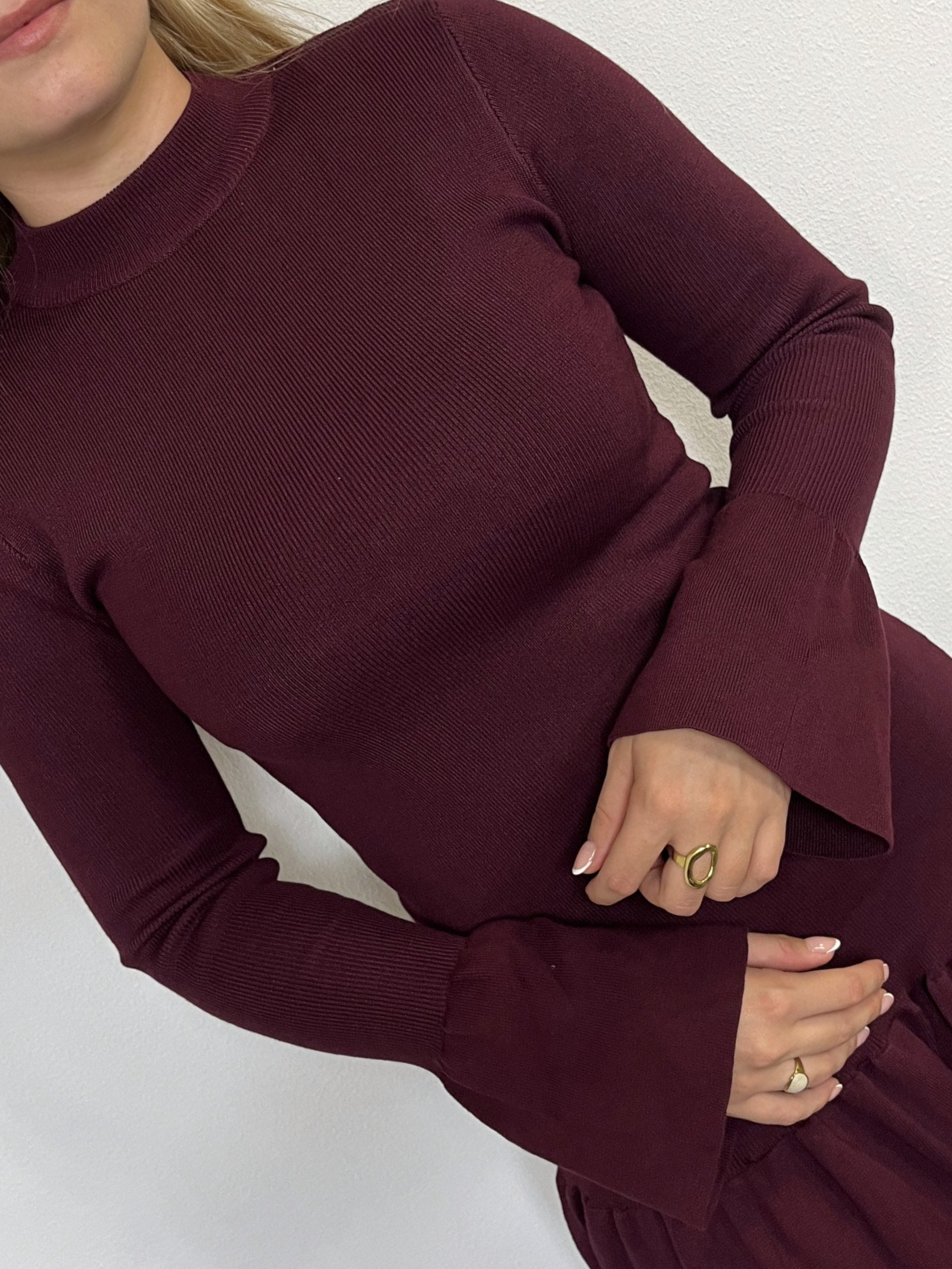 Bordeaux jurkje van ribstof